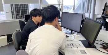 パイピング班、液状化班それぞれで集まることも多く、学生同士で研究の課題などを相談し合いながら解決しています。